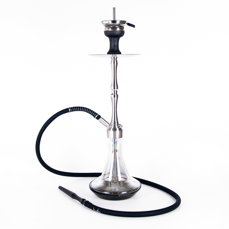 Vodní dýmka MVP Rocket Shiny Bottom Black je vyfrézovaná z pořádného kusu nerezové oceli, což napomáhá lepší stabilitě. Dýmka se jen tak nepřevrhne ani při neopatrné manipulaci. Downstem (spodní trubka) je opatřen nastavitelným difusorem, který zjemní tah a ztiší bublání. Dýmku doplňuje silikonová hadice soft touch s hebkým sametovým povrchem, která vyniká velice příjemným pocitem na omak. S černou hadicí ladí černý hliníkový náustek. A na vrcholu vodní dýmky je keramická korunka Optimus (bez přídavných kroužků) s badchou.